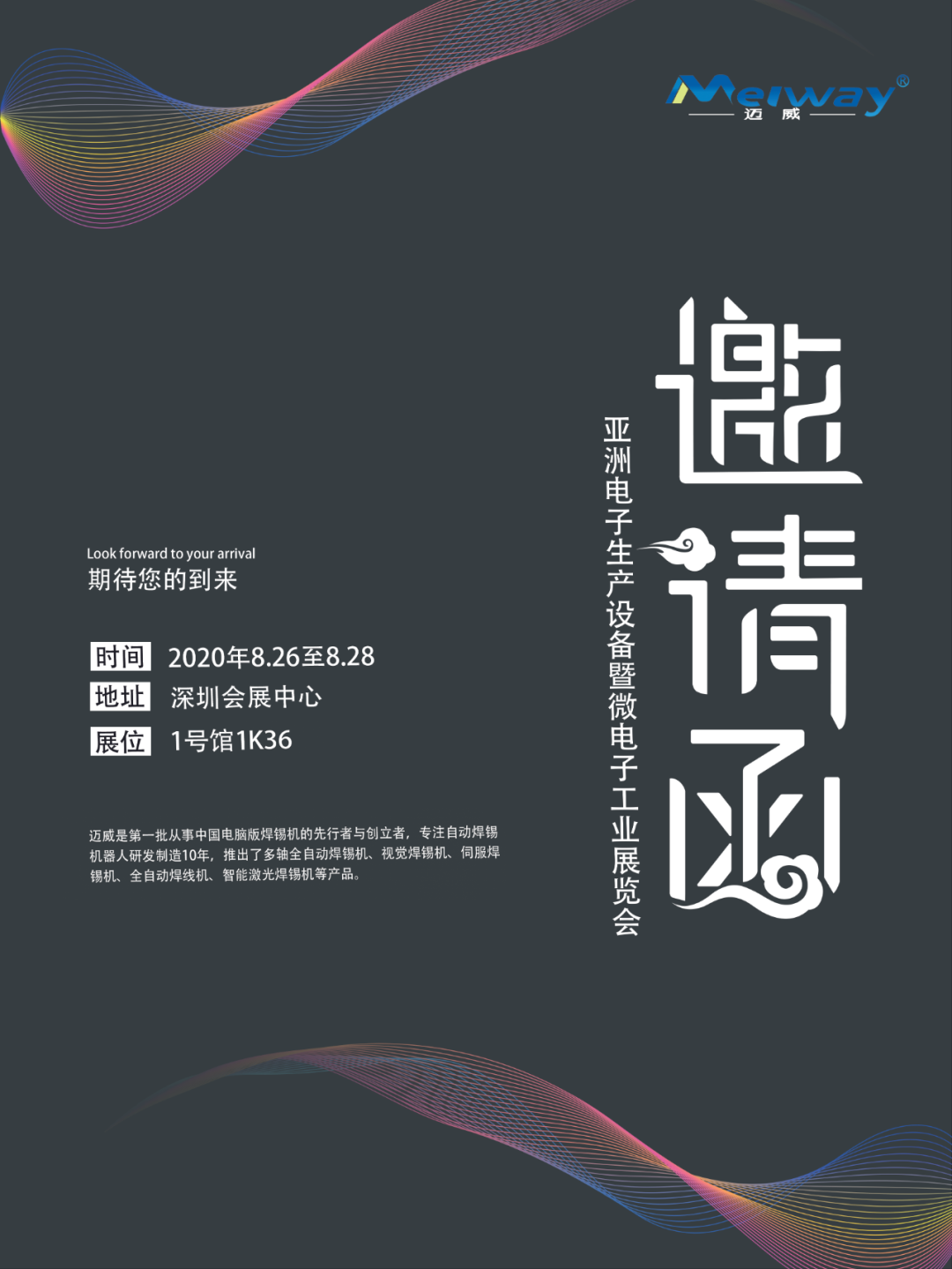 NEPCON ASIA亞洲電子生產(chǎn)設(shè)備暨微電子工業(yè)展覽會(huì)將于2020年8月26-28日在深圳會(huì)展中心盛大展出。屆此邁威測(cè)控技術(shù)有限公司董事長(zhǎng)及全體員工誠(chéng)摯邀請(qǐng)您的到來。邁威秉承專業(yè)為本,服務(wù)至上原則,精心為每一位客戶呈現(xiàn)非凡的的體驗(yàn)與驚喜!(PS:現(xiàn)場(chǎng)有精美禮物贈(zèng)送哦!)