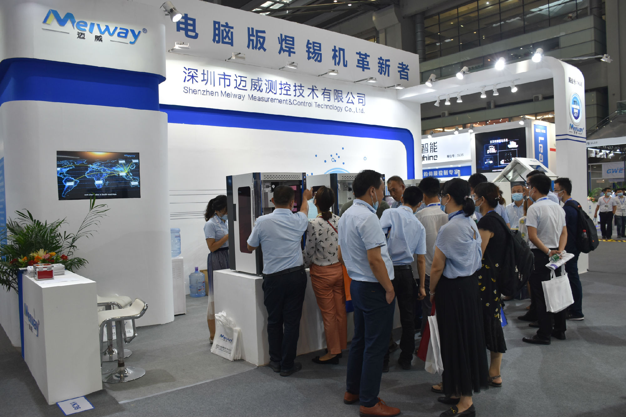展會中,邁威展示了最新技術的自動焊錫機,包括第七代桌面式焊錫機、模組式在線焊錫機、激光焊錫機等,其中桌面式焊錫機、在線式焊錫機和激光焊錫機在展會現場吸引了大量客戶的關注。